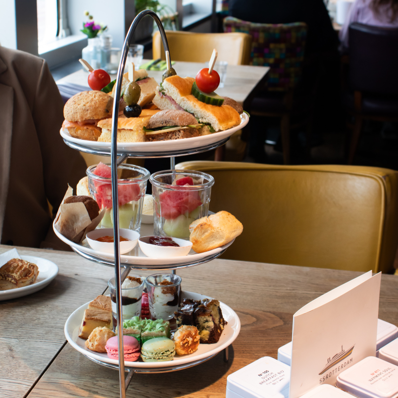Come and enjoy a high tea on the ss Rotterdam. Both small and large groups are welcome in one of our restaurants or atmospheric rooms. Will you let us know in advance that you are coming? Then we will provide lots of fun, tea, sandwiches, scones, savoury snacks, soup and other delicacies. Book the high tea at the bottom of this page!