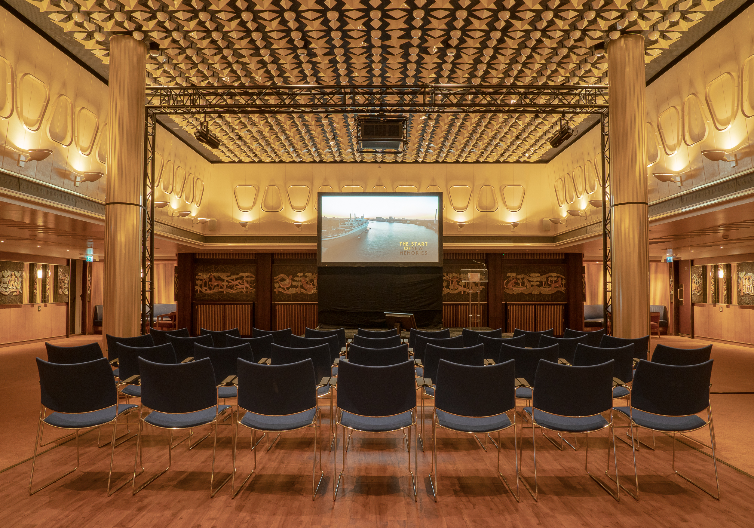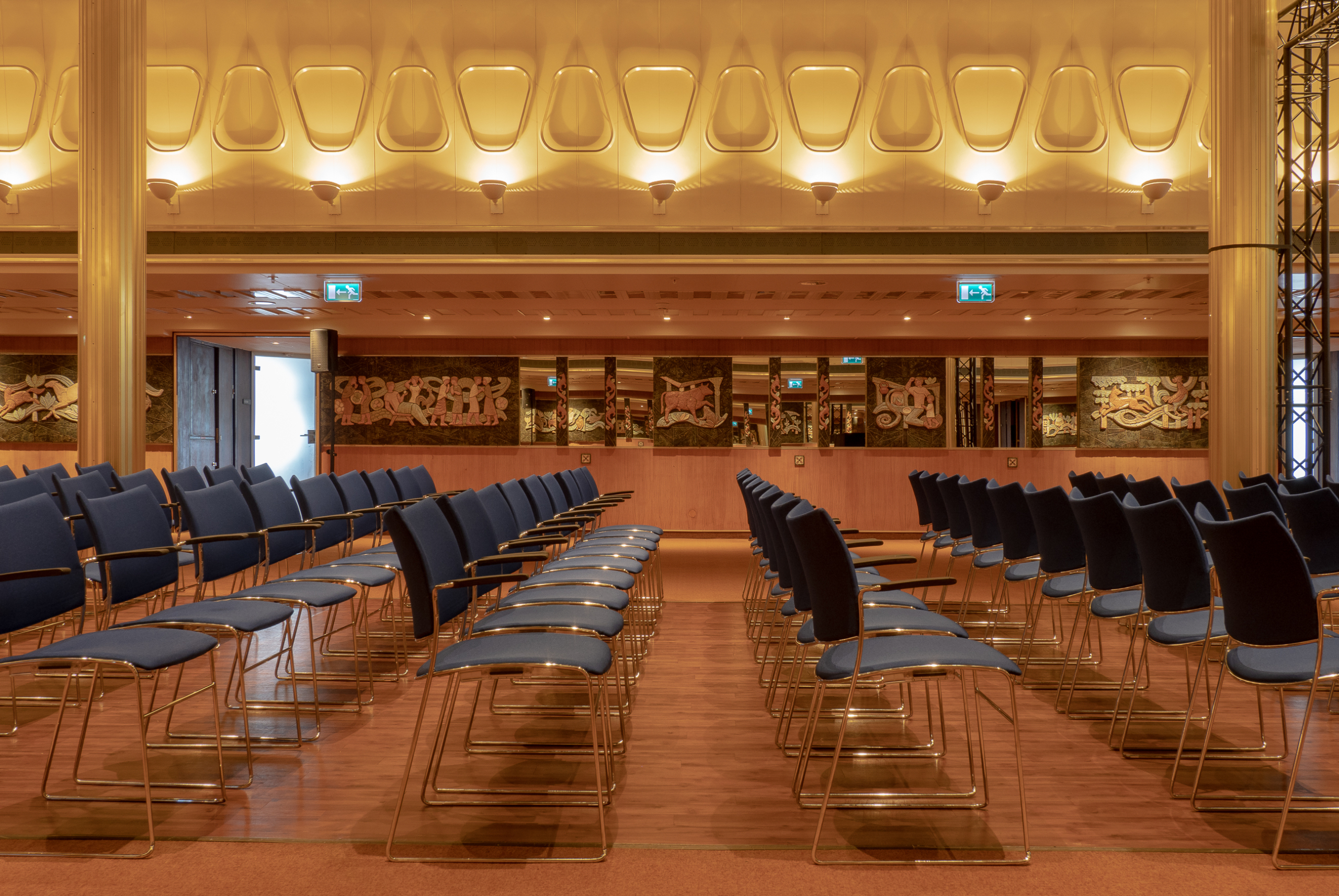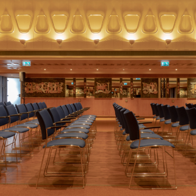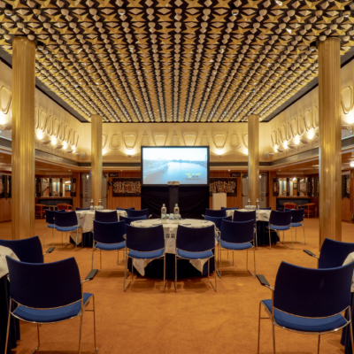 La Fontaine Room, located on the B deck, has a special design with ceramic tiles on the wall and the ceiling with lamps in the form of stars, spheres and diamonds. The atmospheric room is 410 square meters and has several sub-rooms that can function as breakout rooms. This creates a maximum capacity of 350 persons.
