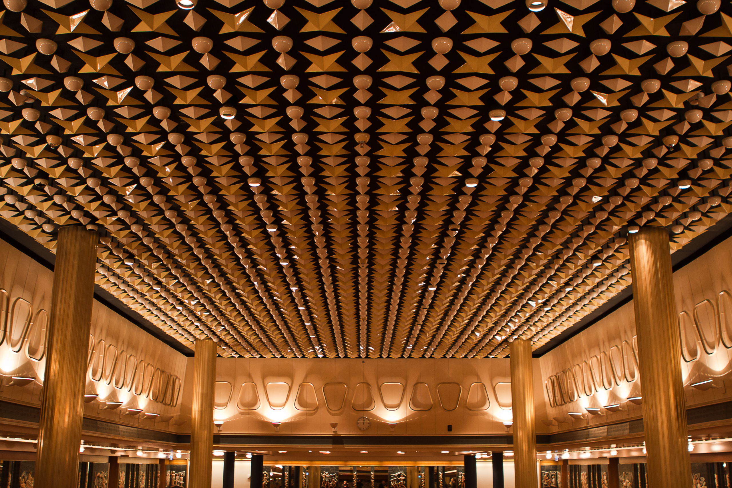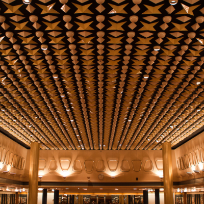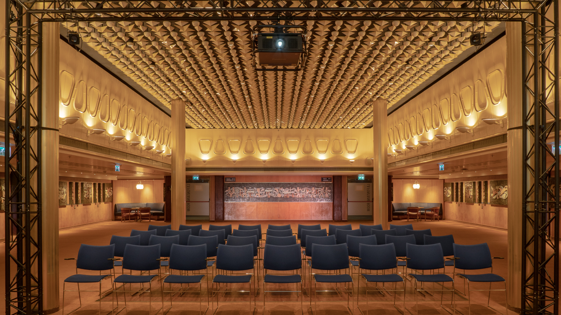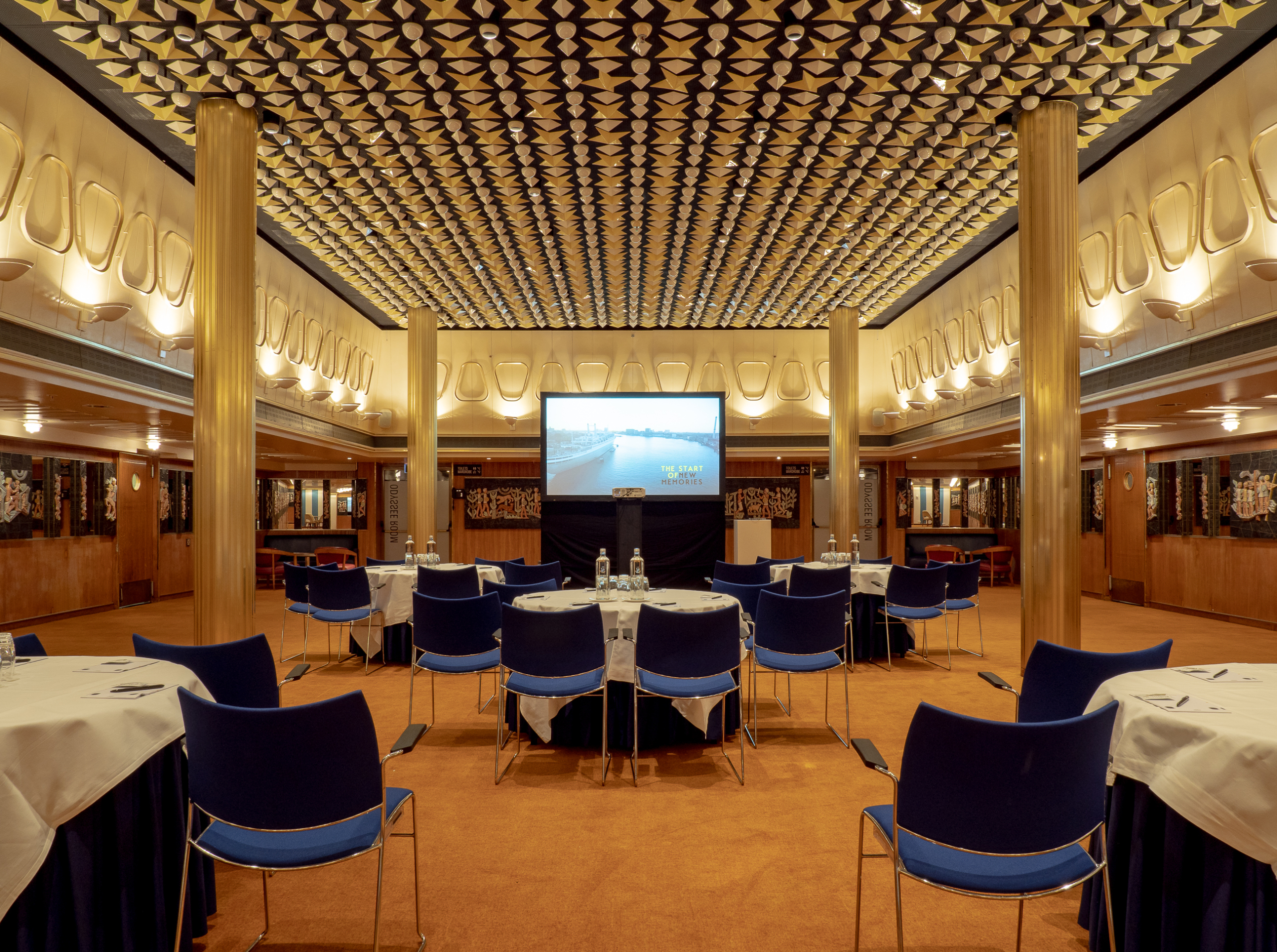 La Fontaine Room, located on the B deck, has a special design with ceramic tiles on the wall and the ceiling with lamps in the form of stars, spheres and diamonds. The atmospheric room is 410 square meters and has several sub-rooms that can function as breakout rooms. This creates a maximum capacity of 350 persons.